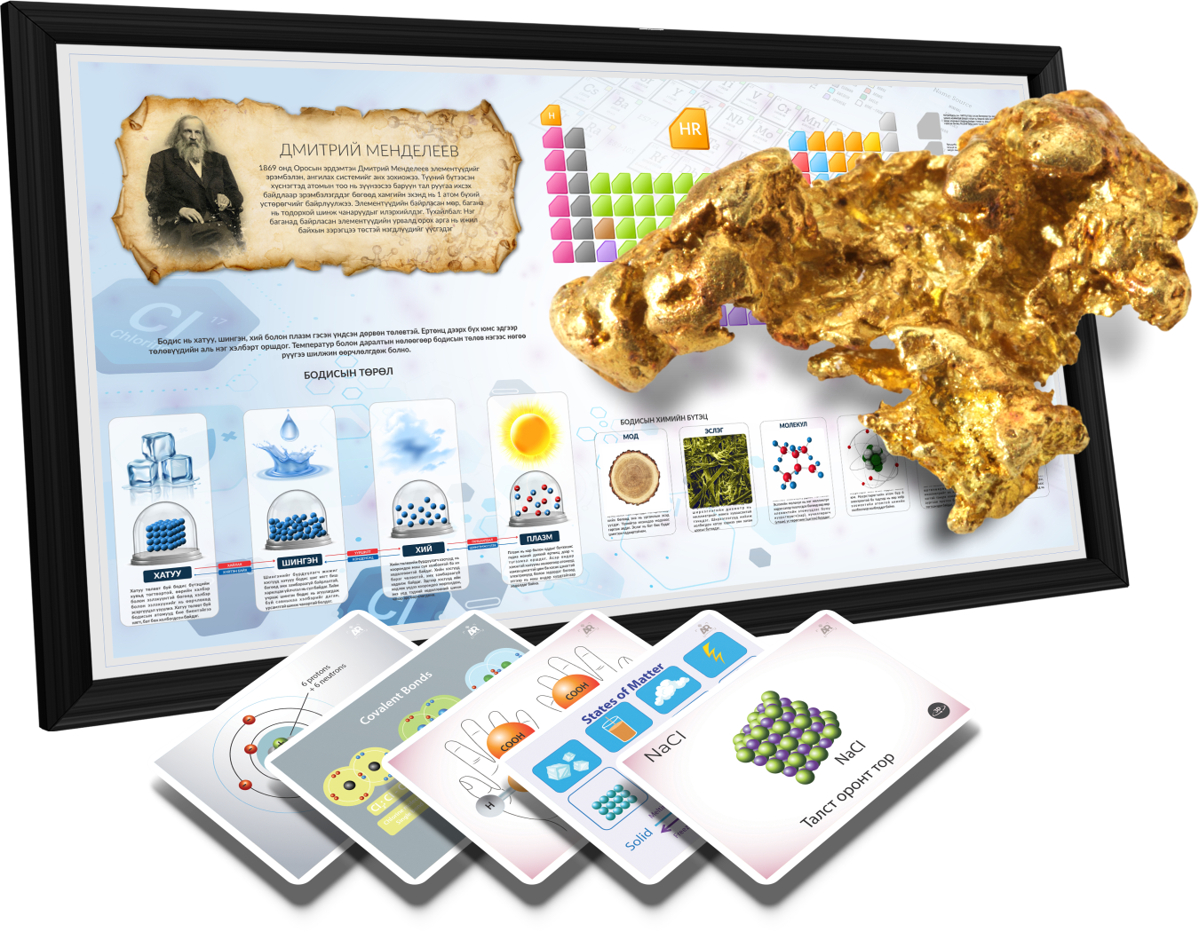 Нарны аймгийн 8 гараг, астеройд, куйпер бүслүүр болон дэлхийн агаар мандлыг нэр томъёотой нь хамт тайлбарласан. Тойрог замд гарагууд хэрхэн эргэлддэг болохыг үзэх боломжтой бөгөөд одон орон судлалд үнэтэй хувь нэмэр оруулсан эрдэмтэн болох Галилео Галилей 3 хэмжээст дүрслэлээр гарч ирэн өөрийнхөө нээлтүүдийг танилцуулна.